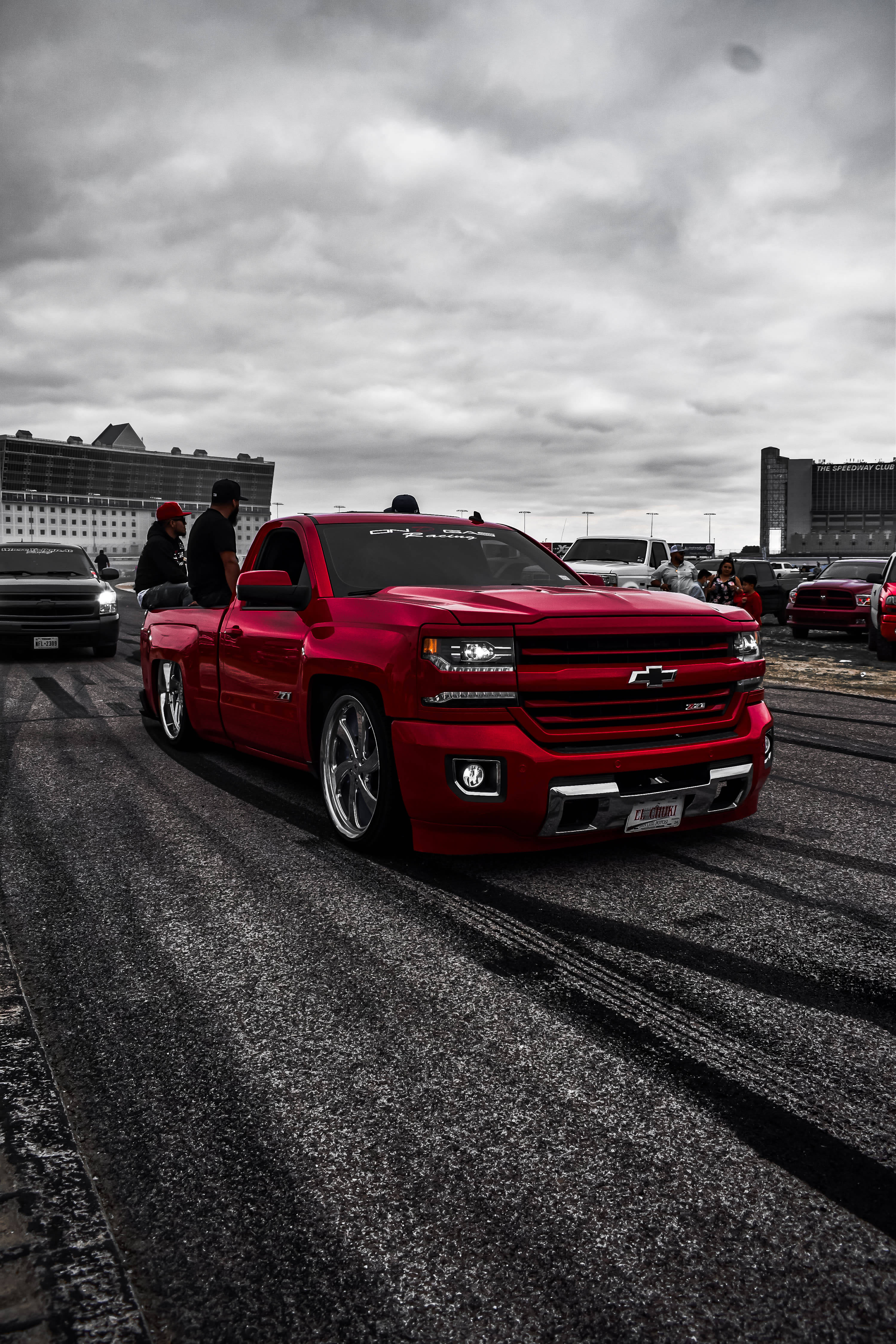 Red Chevy Dropped Truck -