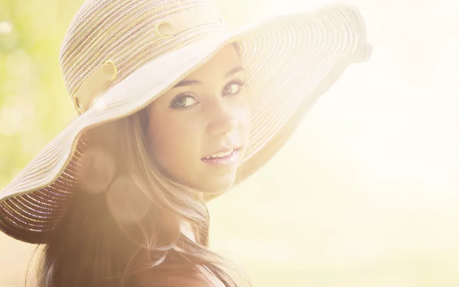 Woman Wearing A Beach Hat On A Sunny Day Wallpaper -