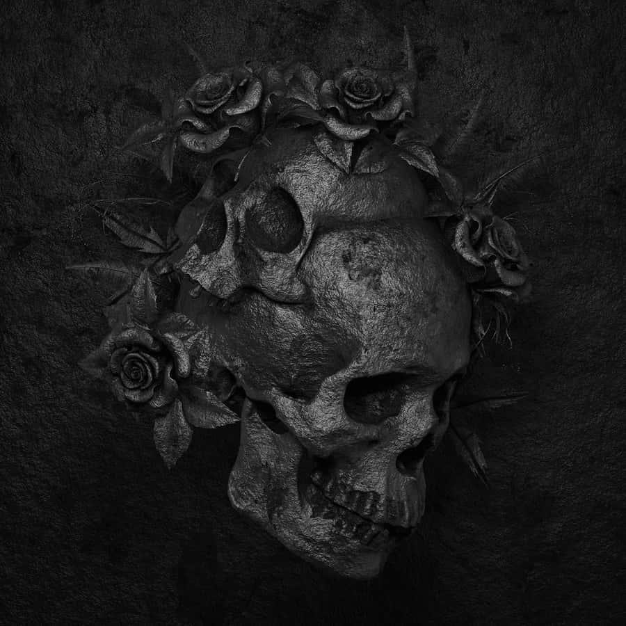 A Black And White Image Of A Skull With A Skull And A Cross Wallpaper -