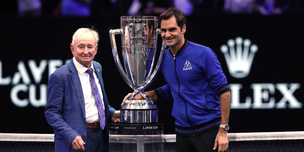 Rod Laver Trophy With Roger Federer -