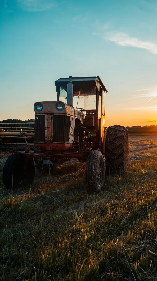 Rustic Tractor At Sunset Wallpaper