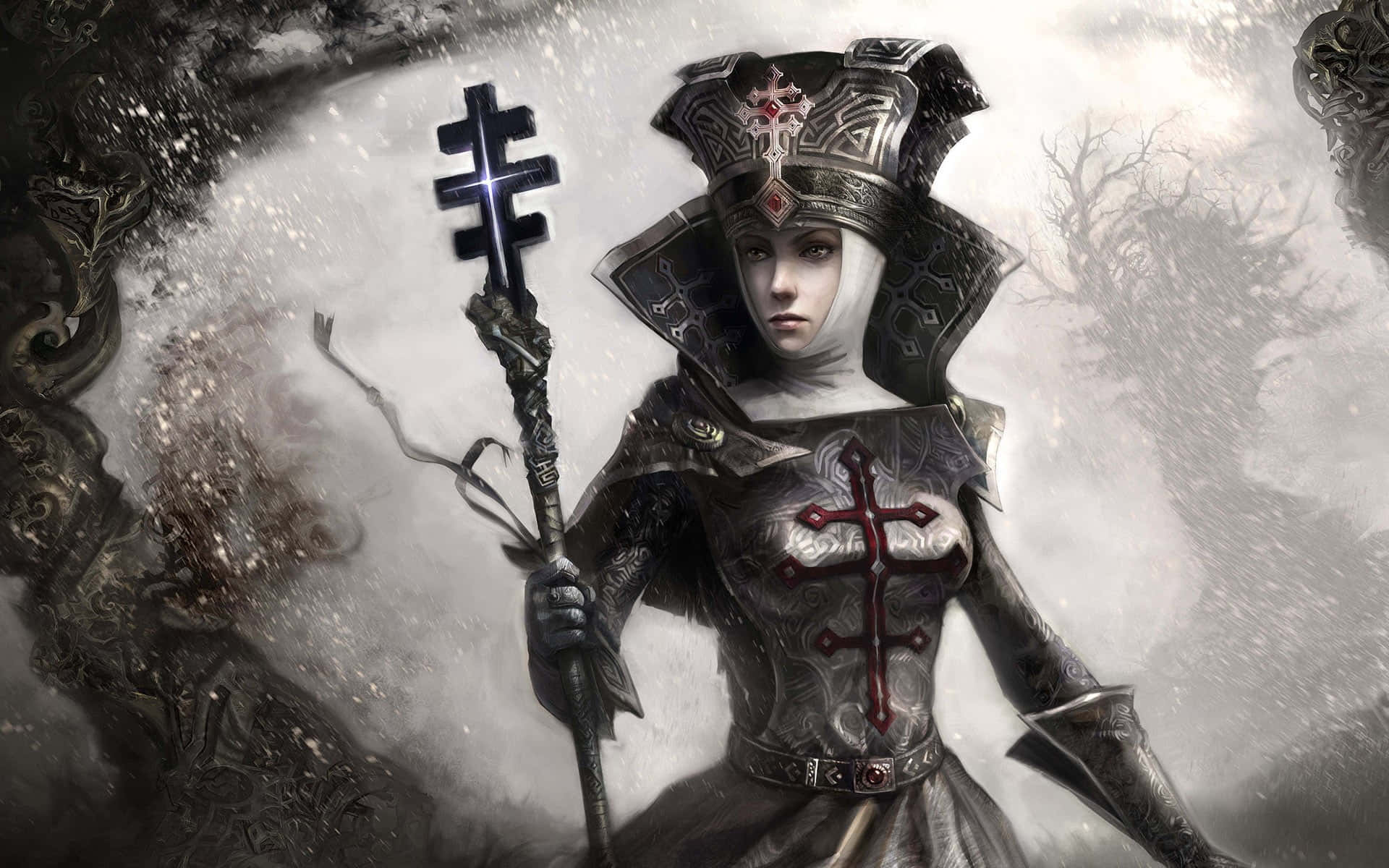 Captivating Priestess Magic Art Wallpaper -