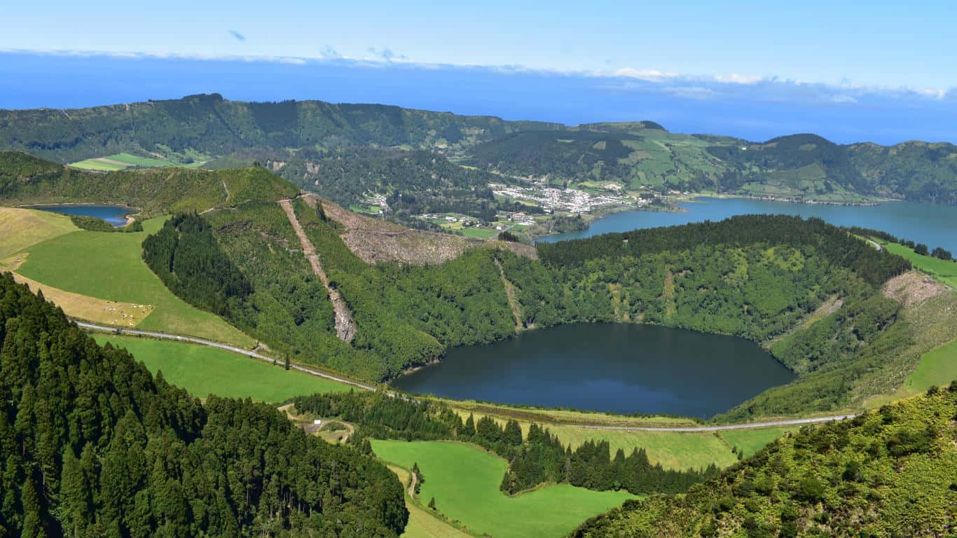 Scenic Lakesand Hills Aerial View Wallpaper