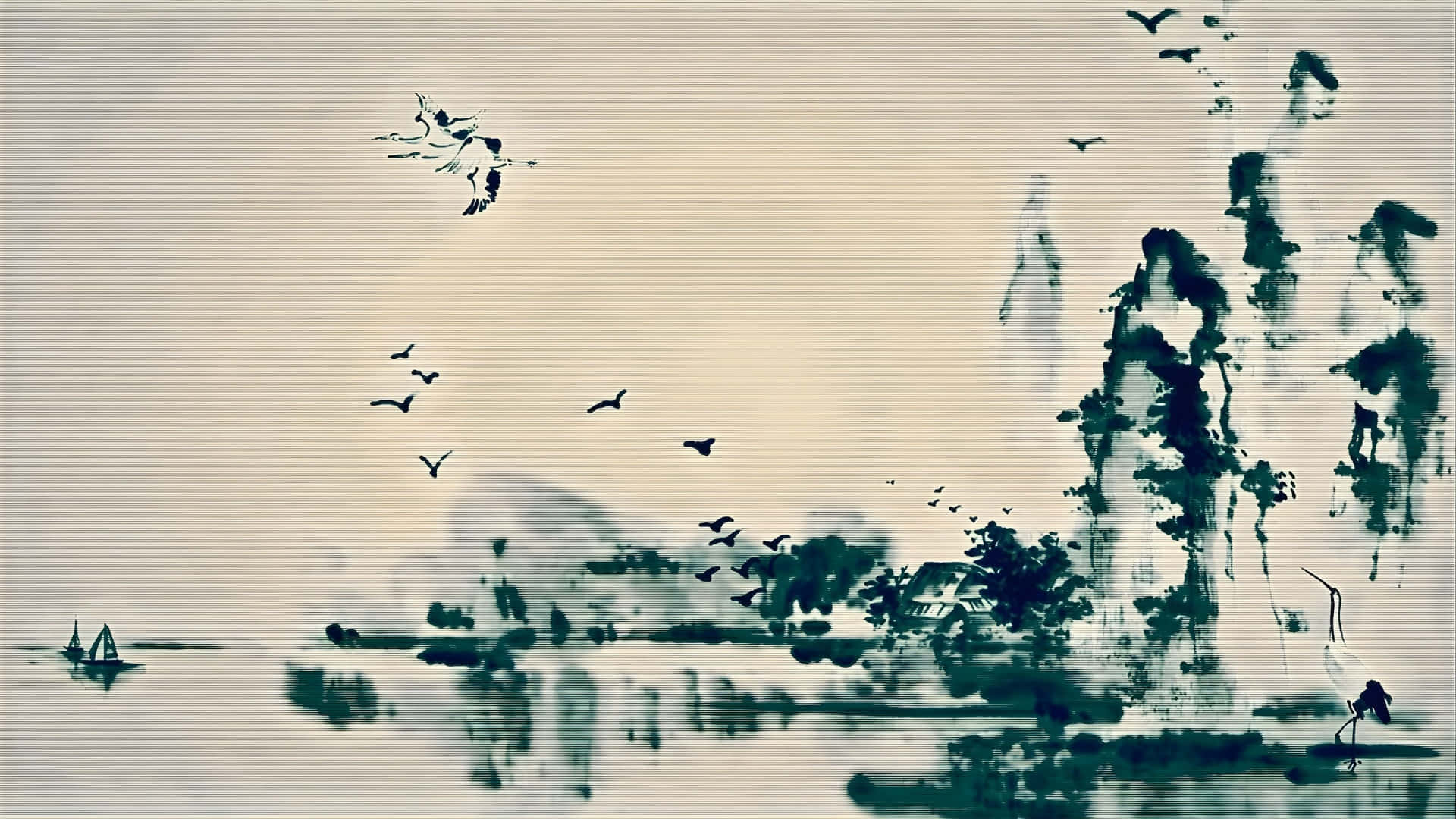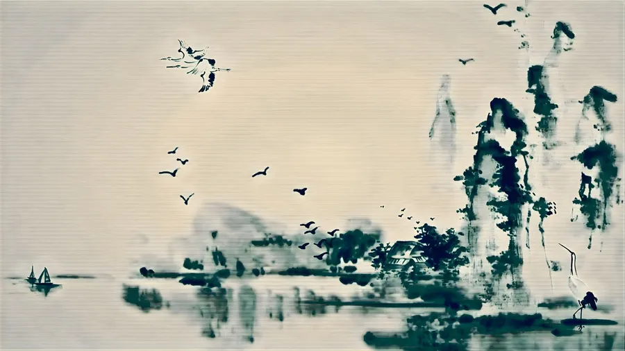 Serene Chinese Watercolor Landscape Wallpaper
