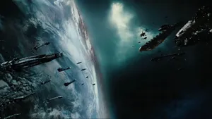 A Spaceship Flying Over The Earth Wallpaper -