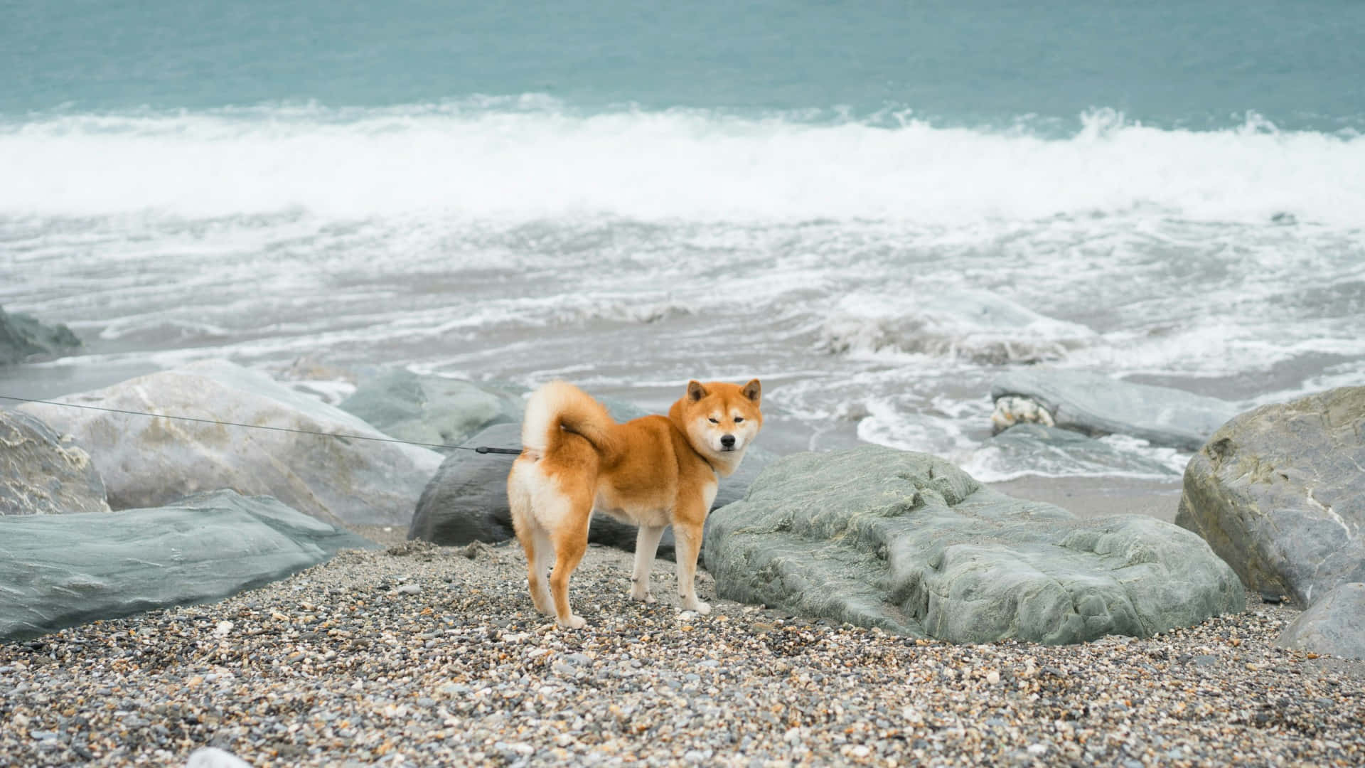 Related Shiba Inu On Rocky Beach Wallpaper