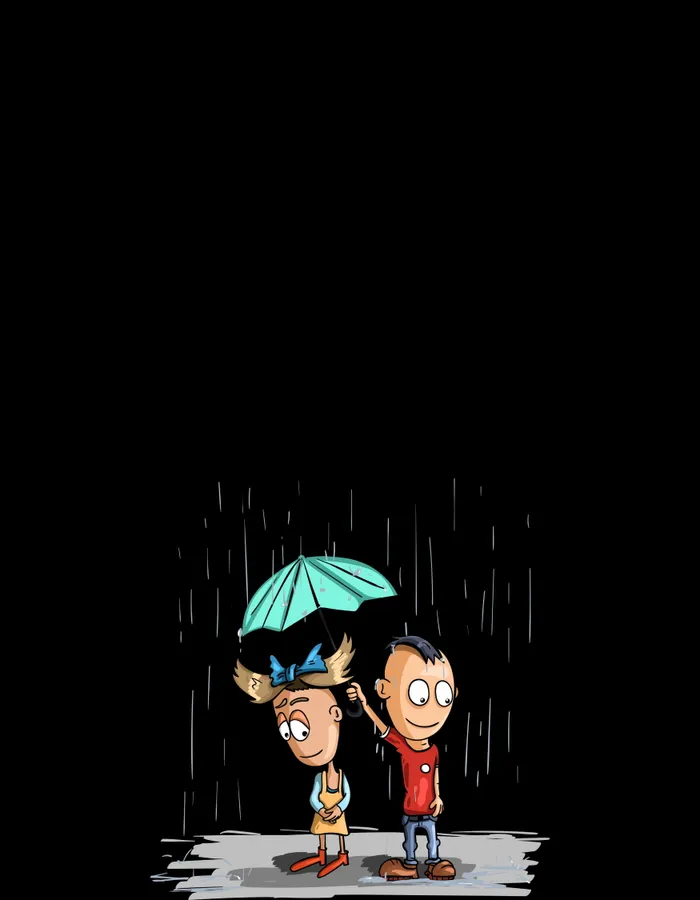 Rain Couple Painting Wallpaper -