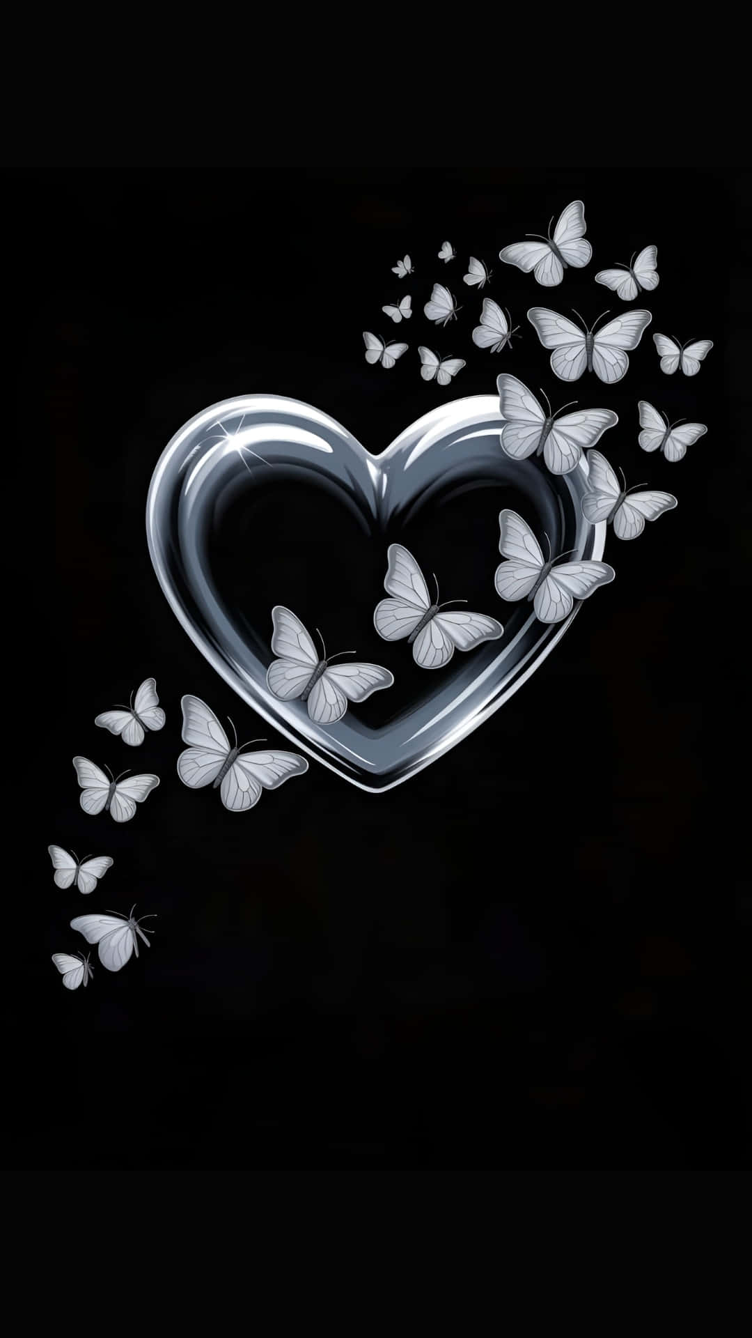 Silver Heart Love Butterfly Wallpaper