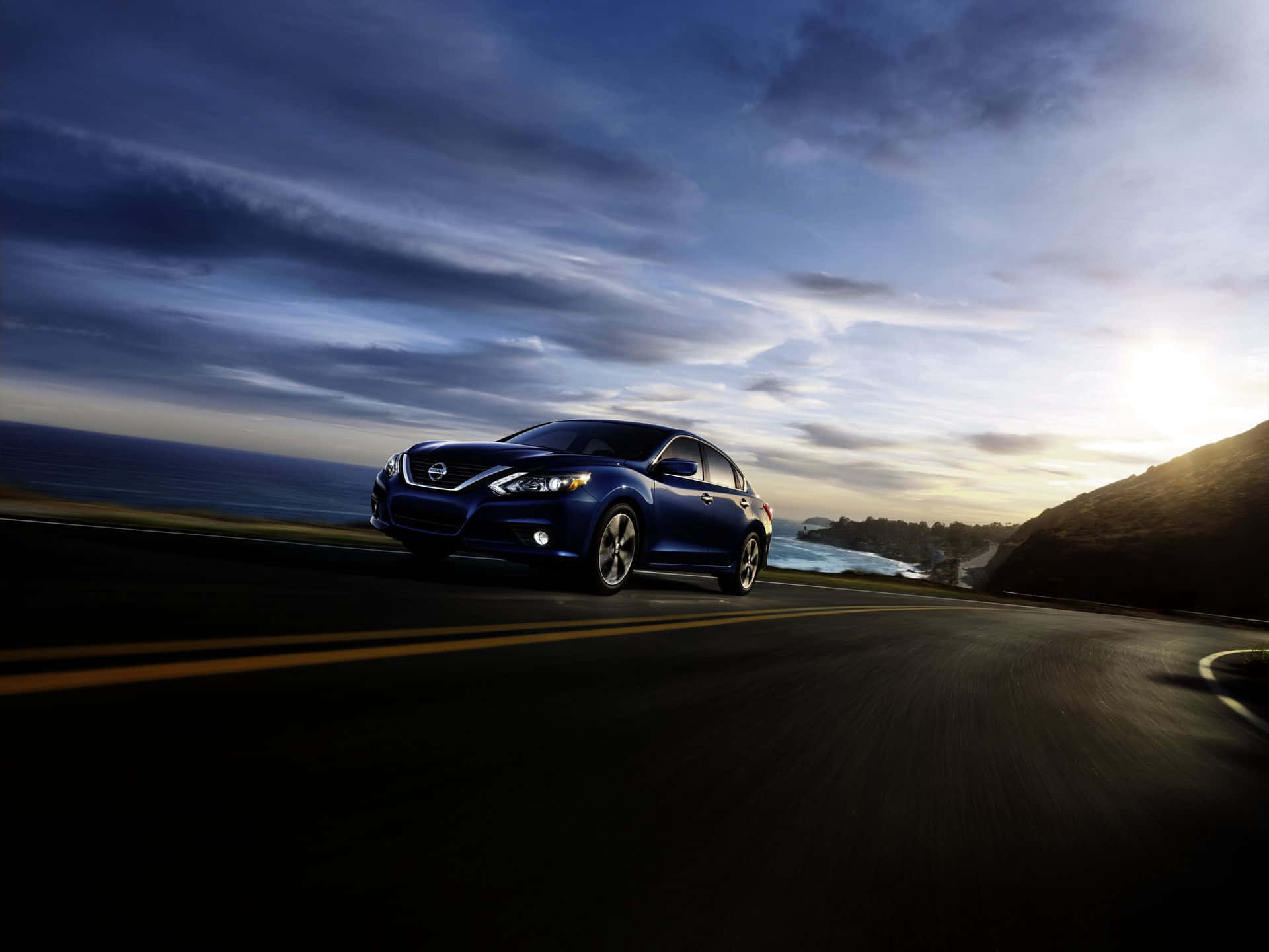 Sleek Nissan Altima On Open Road Wallpaper