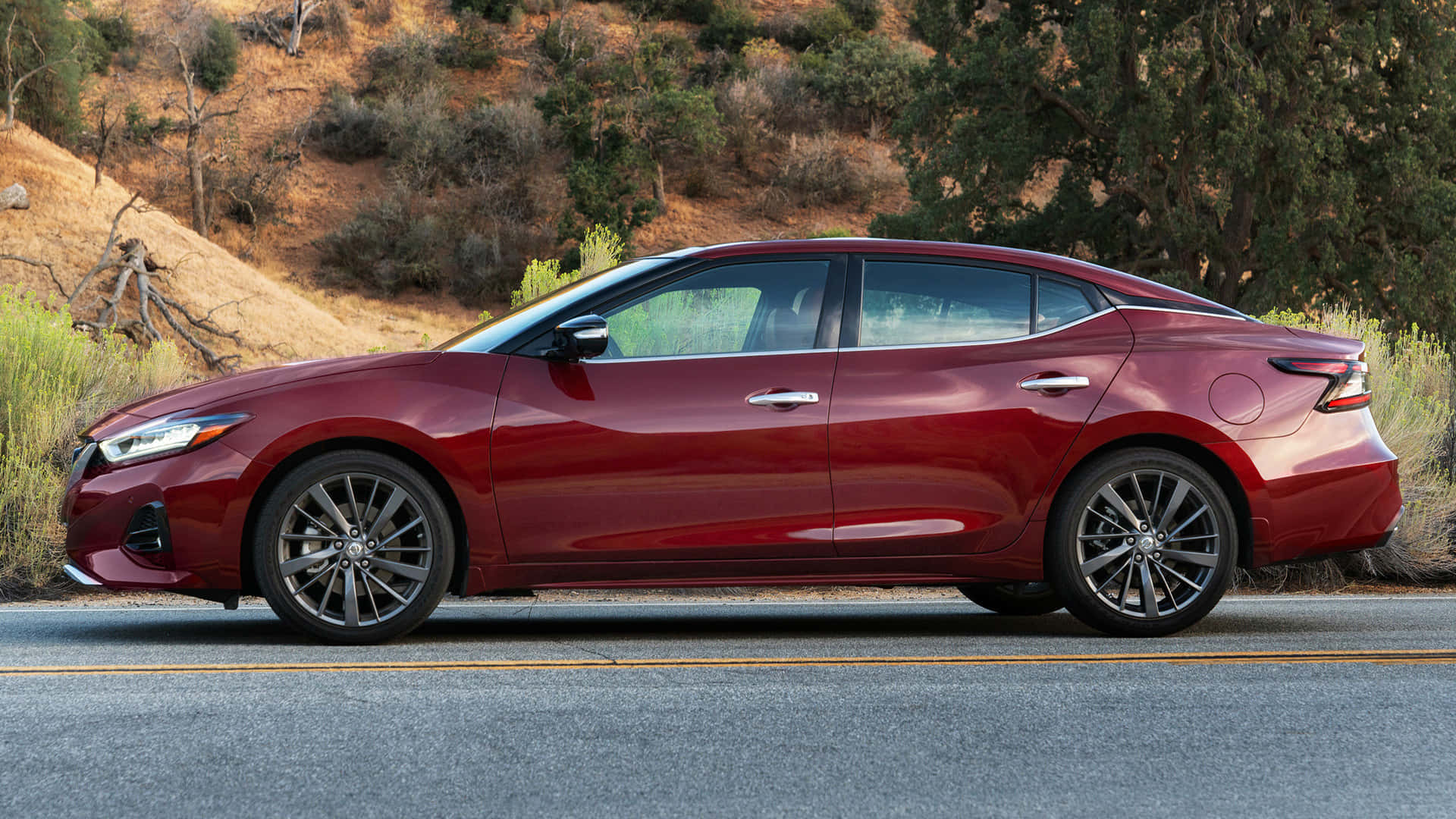 Nissan Maxima Cruising On The Road Wallpaper -