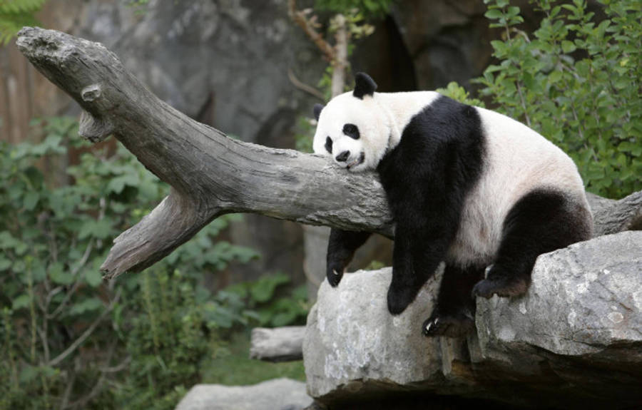 Sleepy Beautiful Panda On Log -