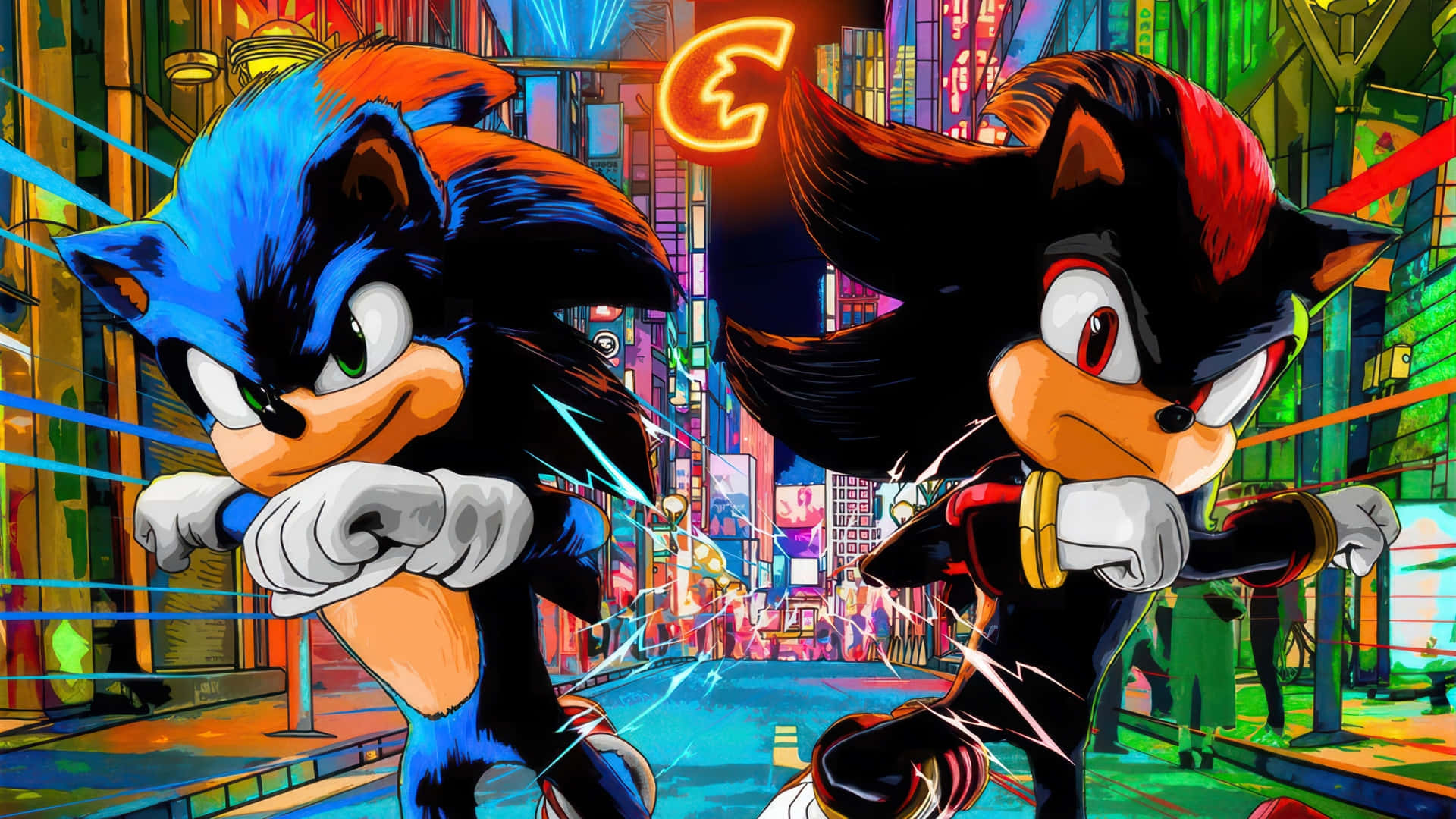 Sonic And Shadow City Chase Wallpaper