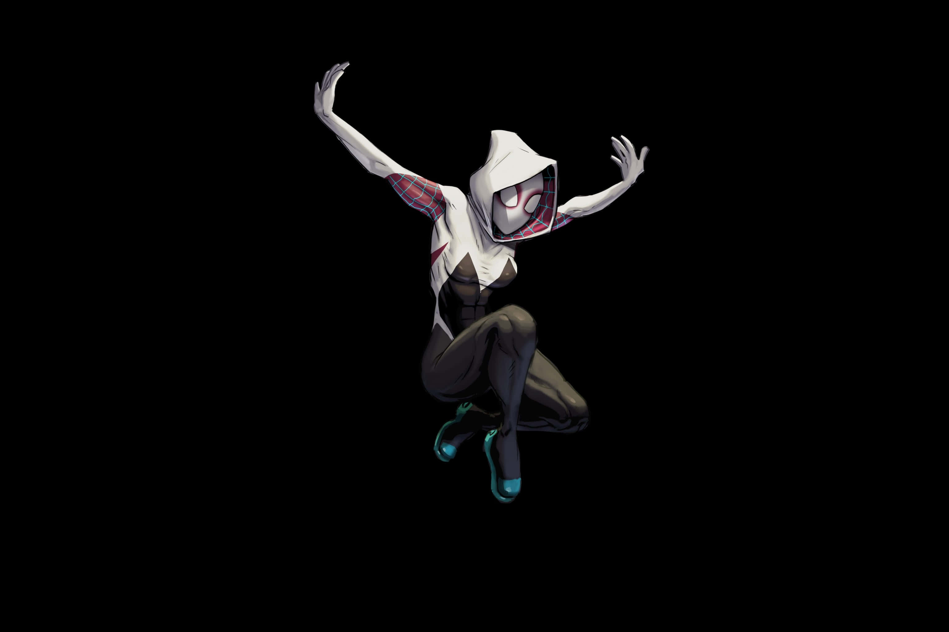 Spider Gwen Dynamic Pose Black Background Wallpaper