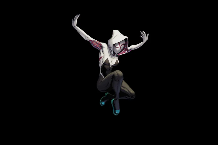 Spider Gwen Dynamic Pose Black Background -