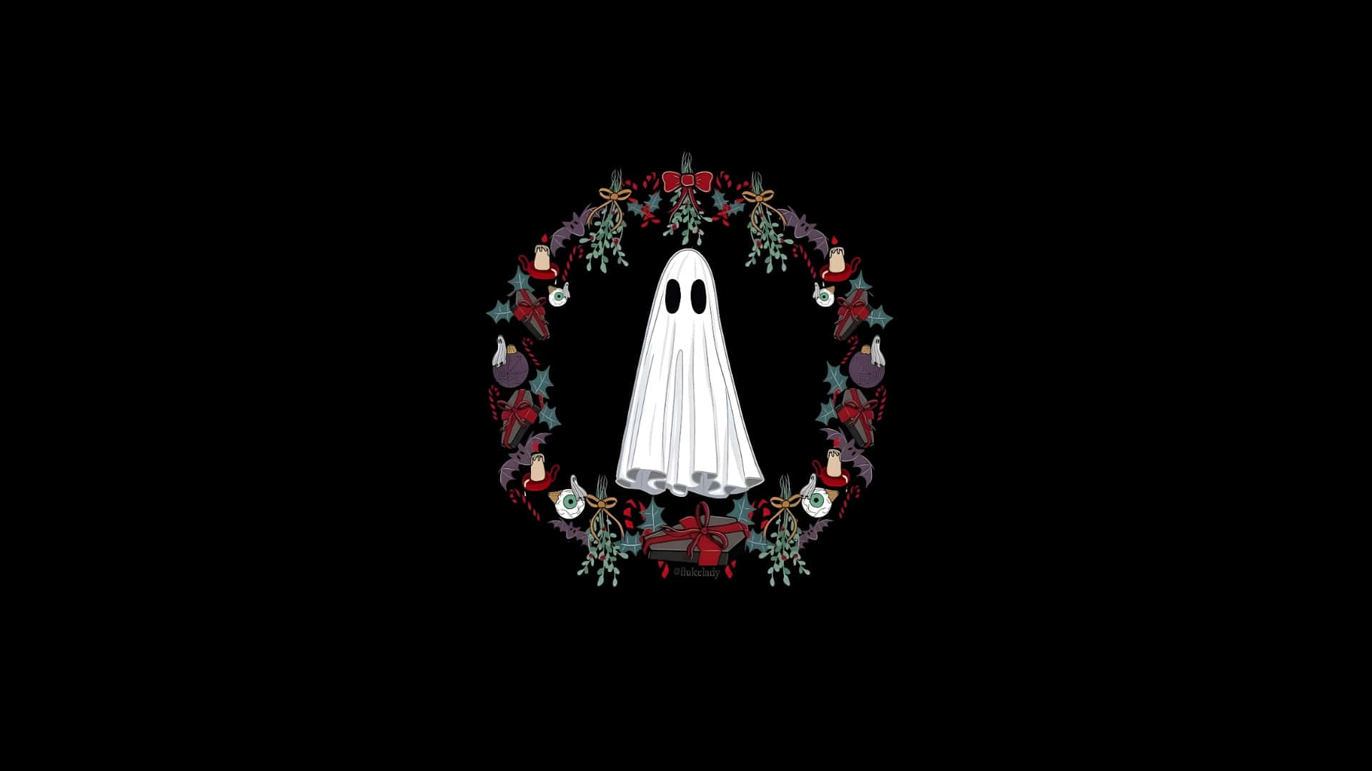 Spooky Christmas Ghost Wreath Wallpaper