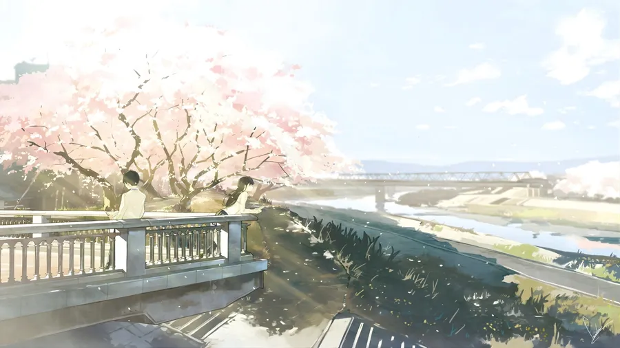 Spring Anime Cherry Blossom Scene Wallpaper