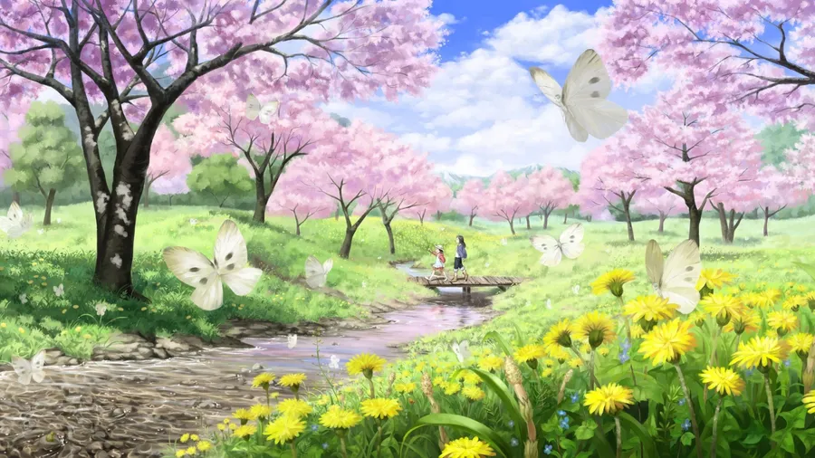 Spring Anime Scenic Landscape Wallpaper -