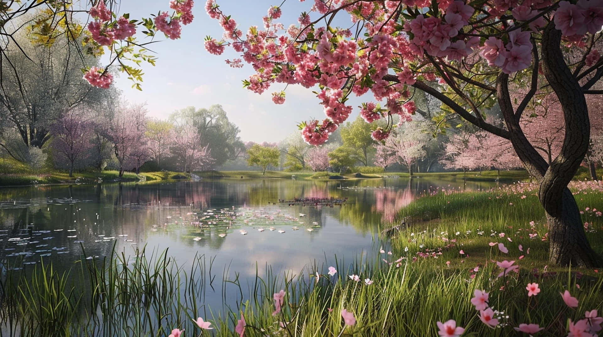 Springtime_ Serenity_by_the_ Lake Wallpaper -