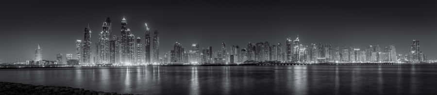 A Shimmering, Enchanting Black And White Cityscape. Wallpaper -