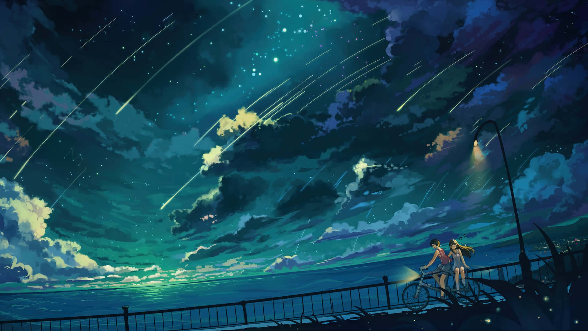 Anime Couple Under Shooting Stars Wallpaper -