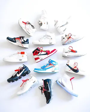 "sleek Off-white X Nike Shoes In Stylish Flat Lay Presentation" Wallpaper -