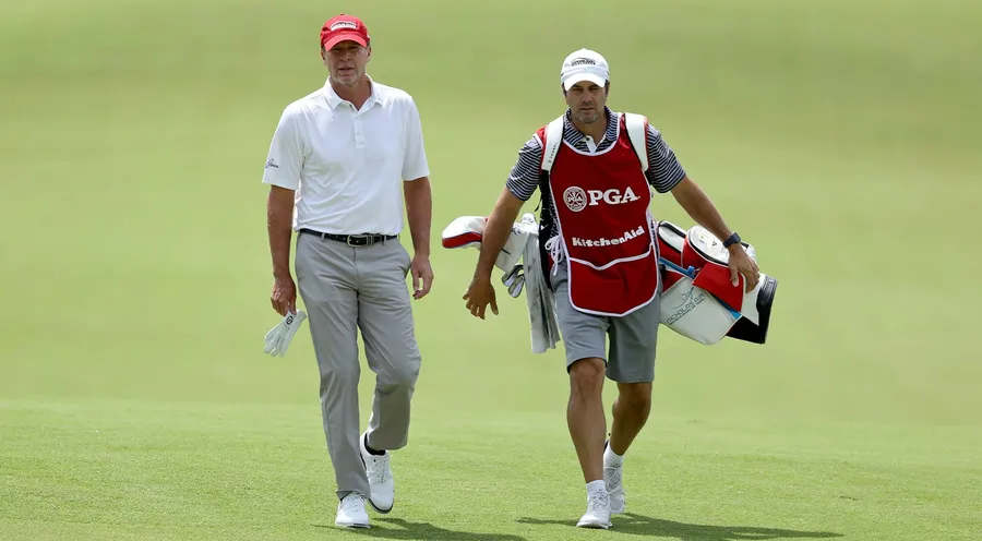Steve Stricker Strolls With Caddie -