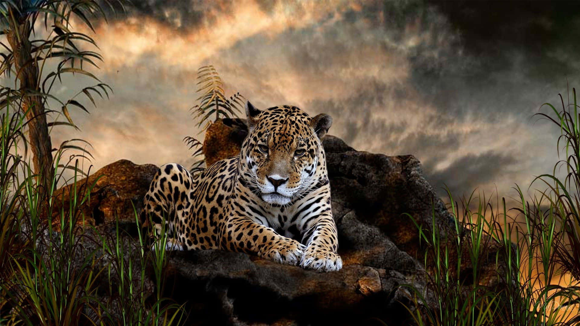 Majestic Leopard In 3d Landscape Wallpaper -