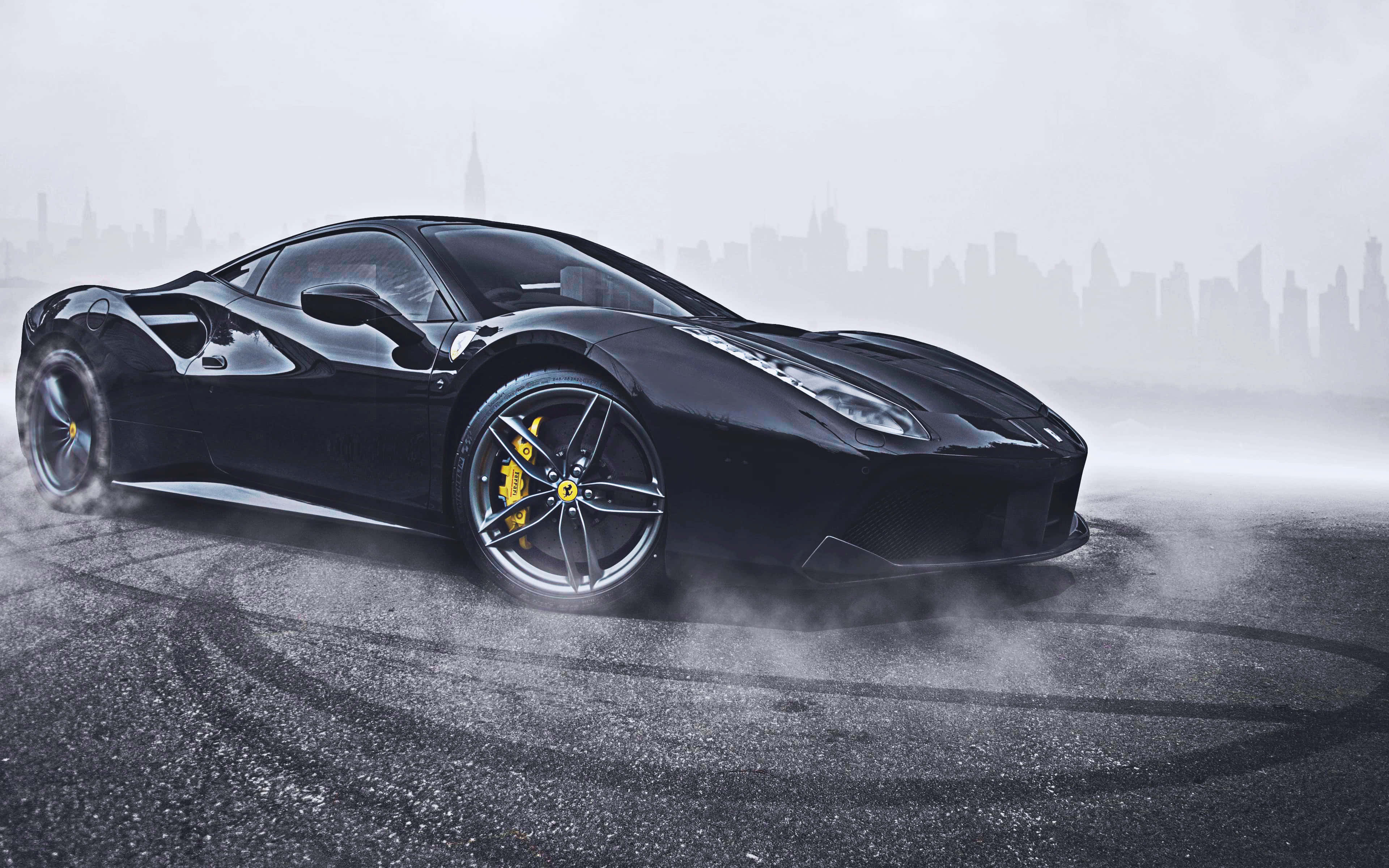 Sleek Ferrari 488 Spider In Motion Against A Stunning Urban Backdrop. Wallpaper -
