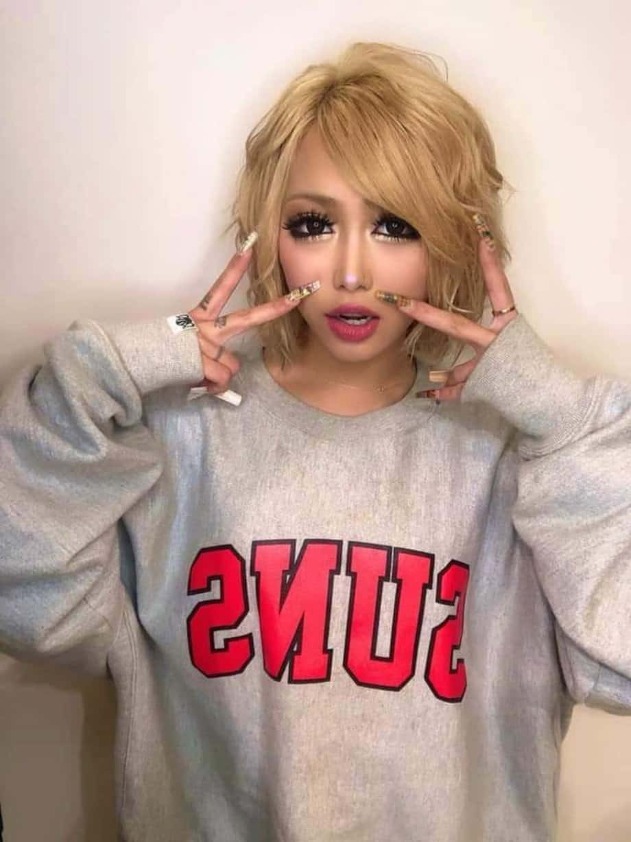 Stylish Gyaru Girl Posing In A Fashionable Outfit Wallpaper -