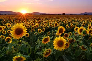 "a Field Of Sunflowers Blooms In The Sunshine" Wallpaper -