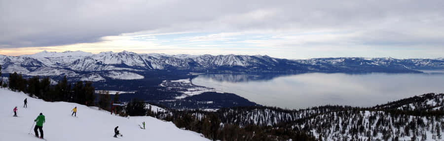 Take In The Breathtaking Views Of Lake Tahoe With Its Picturesque Snow-capped Mountains And Crystal Blue Waters. Wallpaper -