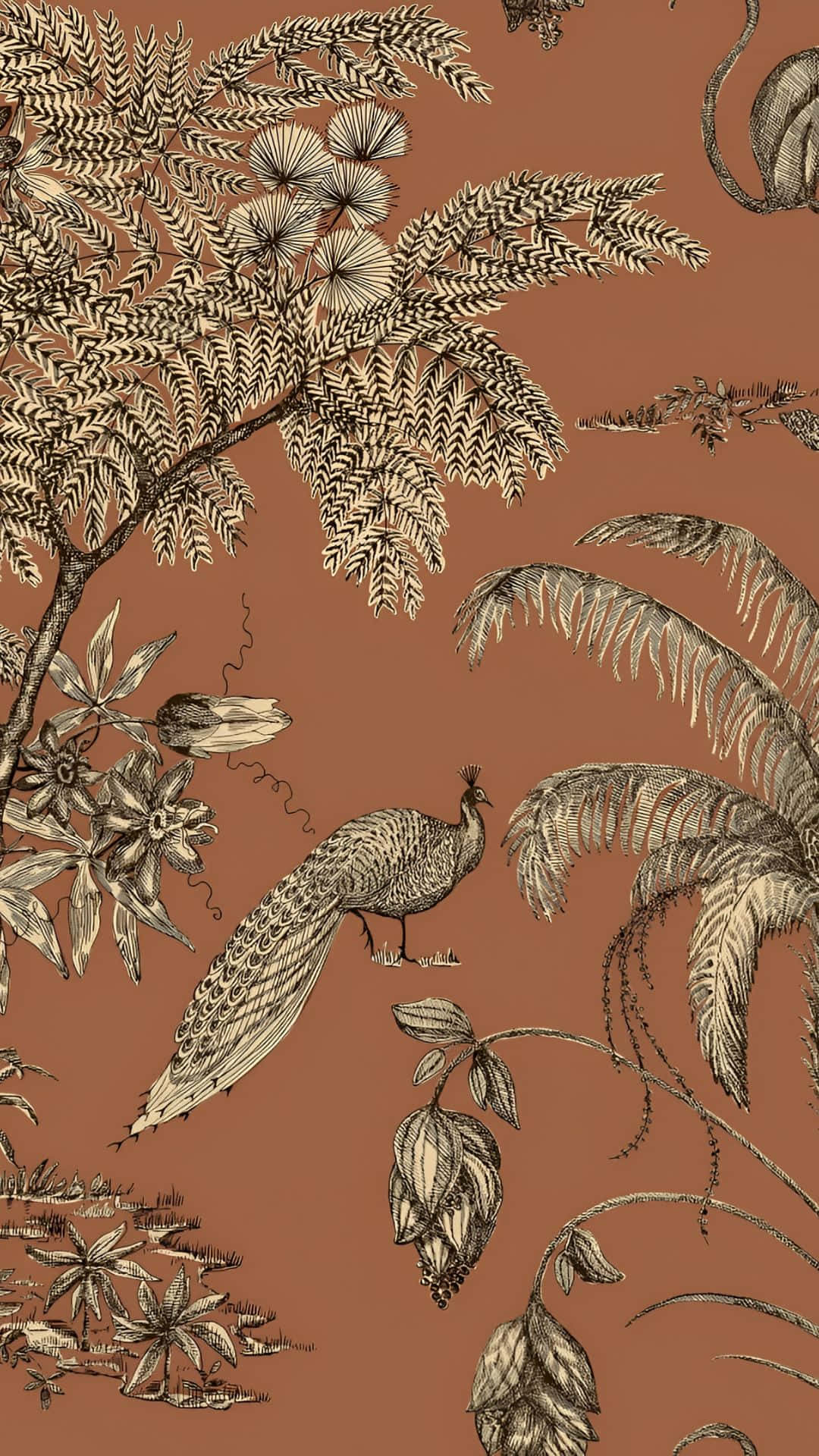 Terracotta Tropical Botanical Design Wallpaper