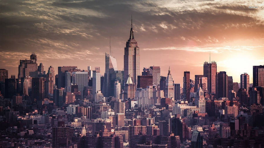 “the Beauty Of The New York Skyline Painted In A Golden Sunset” Wallpaper
