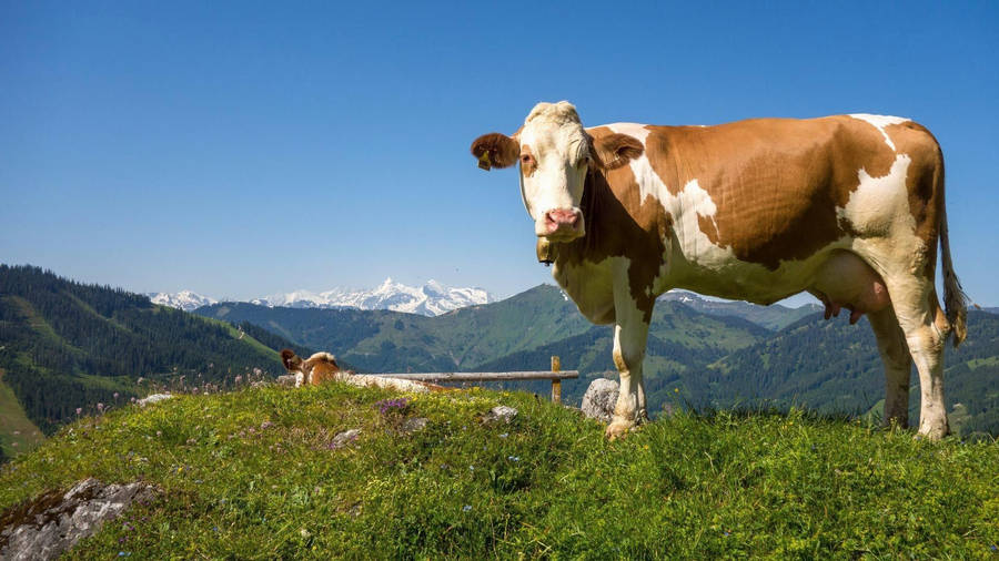 A Content, Floppy-eared Cow Enjoying The Pasture Wallpaper -