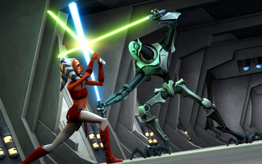 Ahsoka Tano Ready For Battle In The Clone Wars Wallpaper -