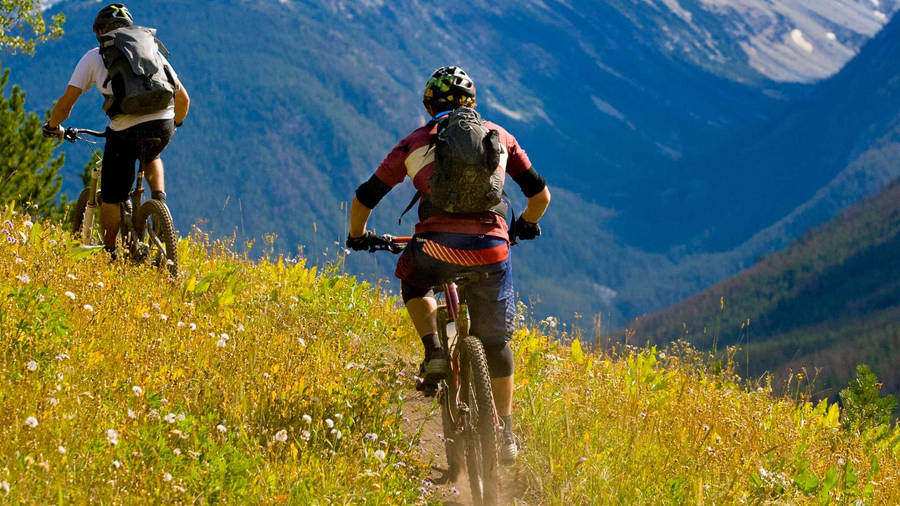 “thrill Of Mountain Biking: Cyclists Conquering Hillside Terrains” Wallpaper