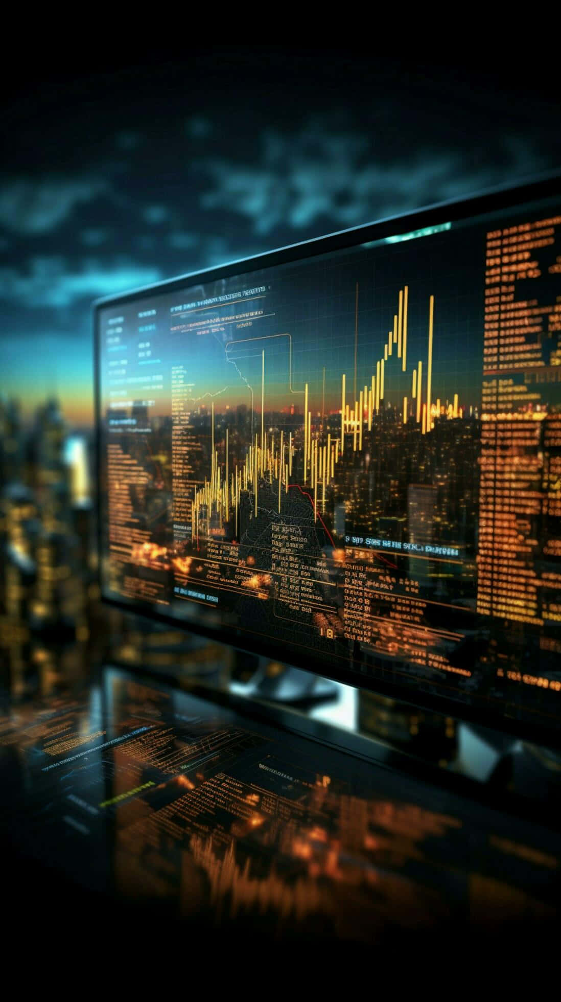 Trading Data Monitor City Background Wallpaper