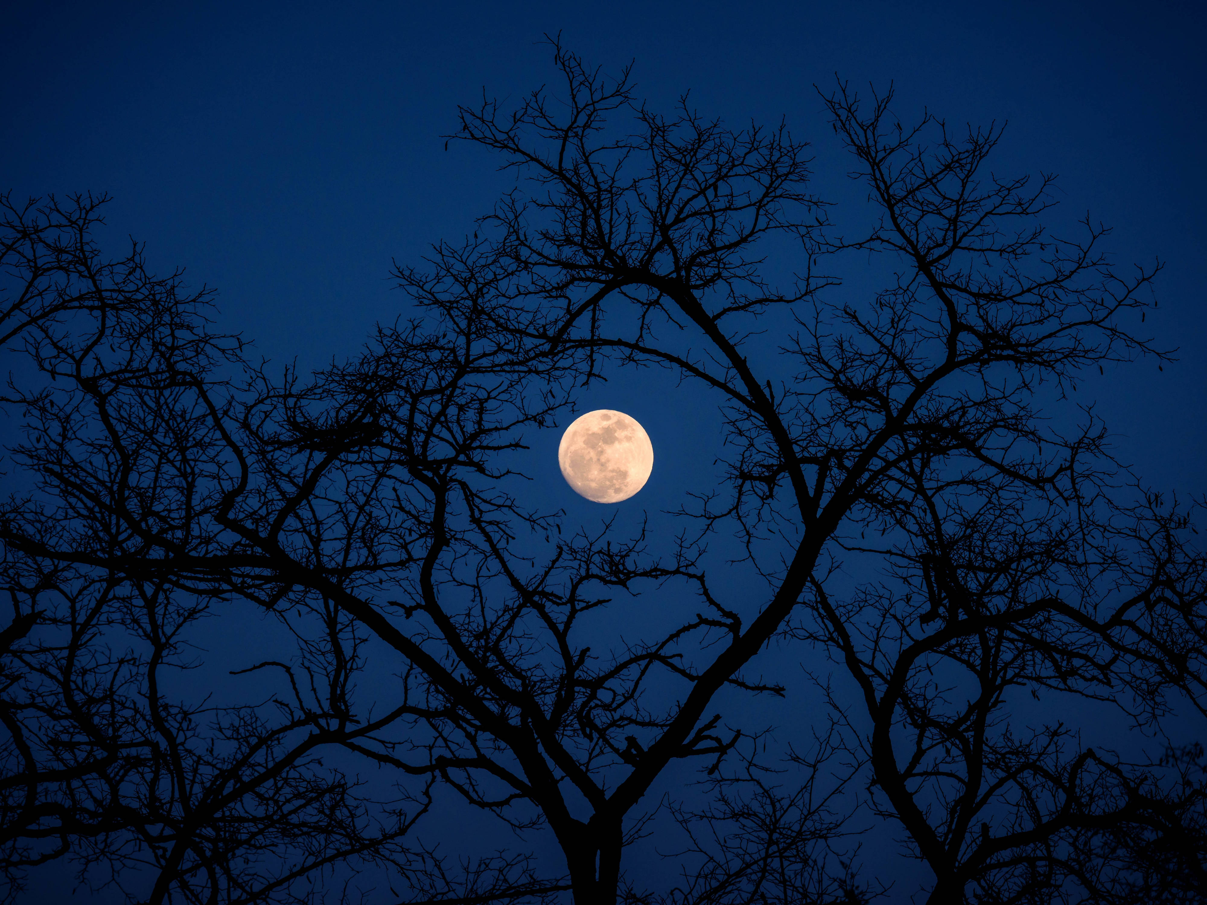 Trees Branching Over Beautiful Full Moon Wallpaper