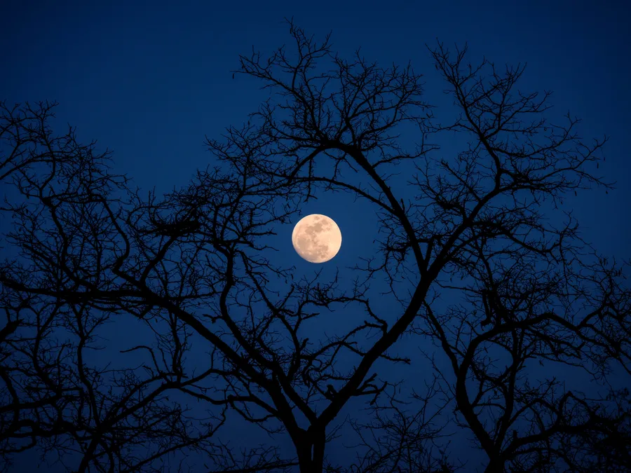 Trees Branching Over Beautiful Full Moon -