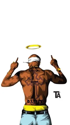 Image Cartoon Portrait Of Rap Icon Tupac Wallpaper -