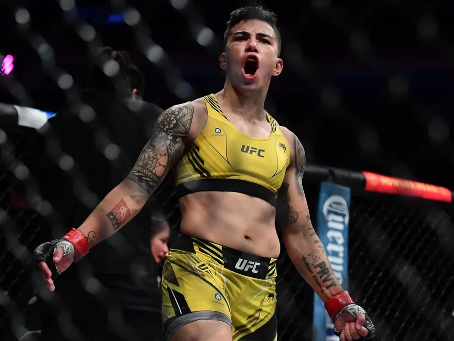 Amanda Lemos Triumphant In The Ufc Octagon Wallpaper -