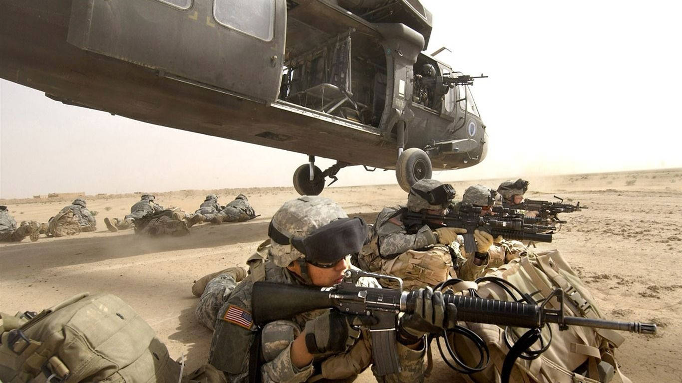 Us Army Helicopter Soldiers Formation Wallpaper