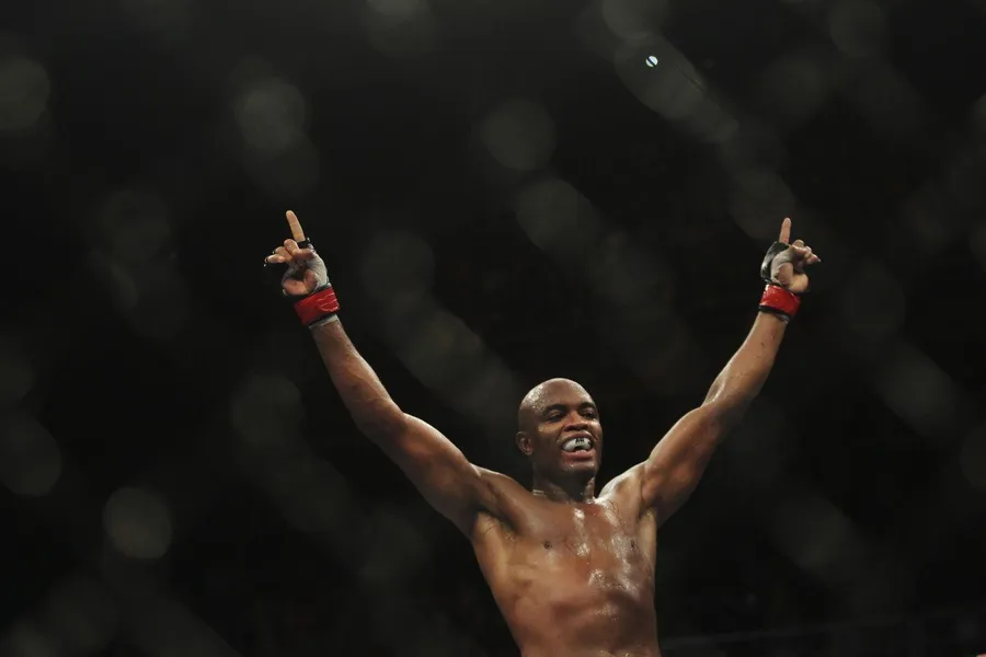 Victorious Look Of Anderson Silva Pointing Upwards -