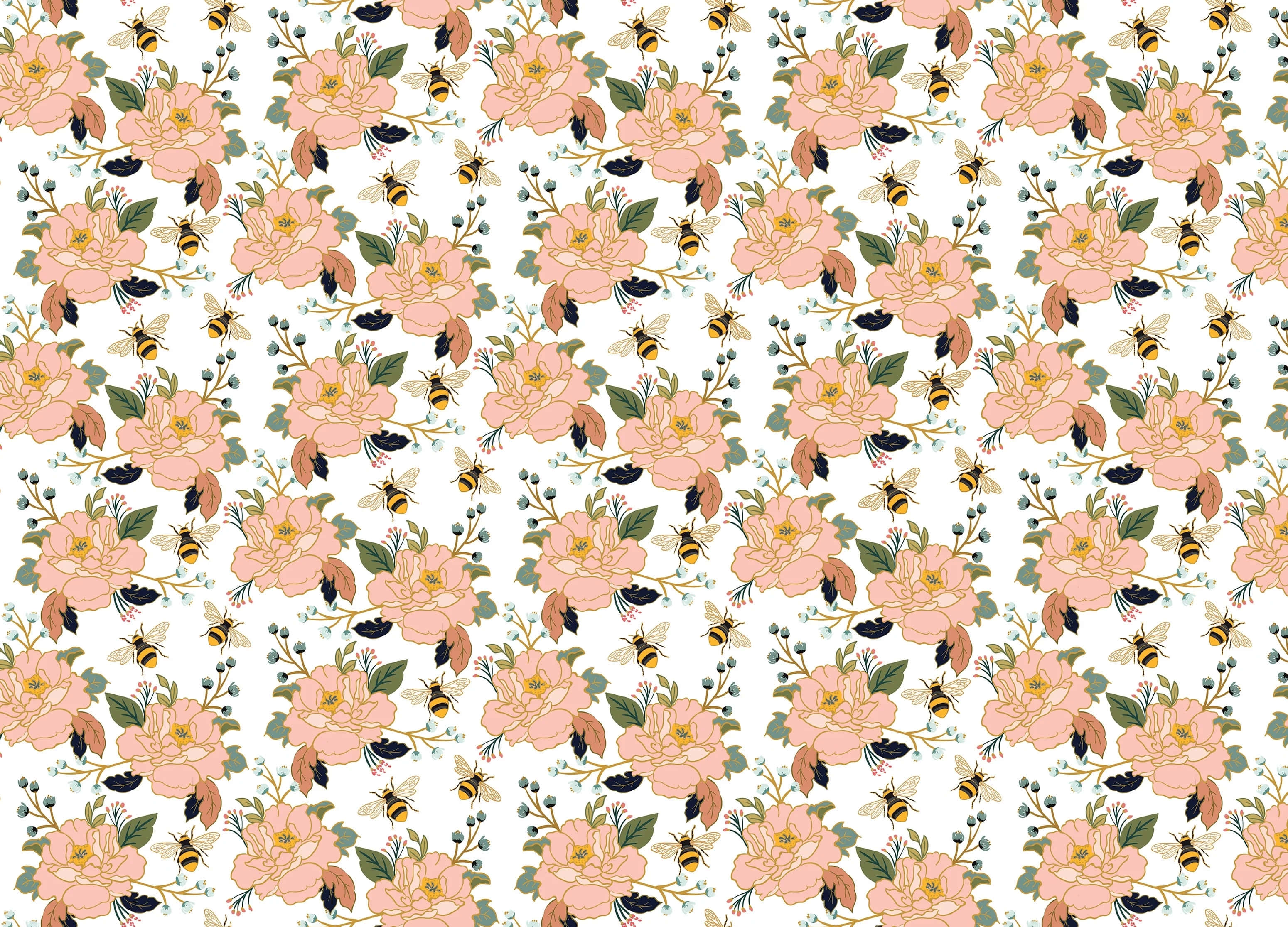 Vintage Floral Bee Pattern -