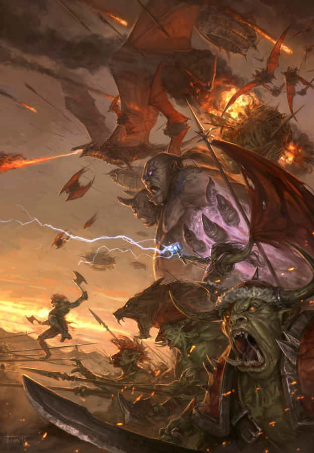 Epic Battle Under The Burning Skies - World Of Warcraft Horde Wallpaper -