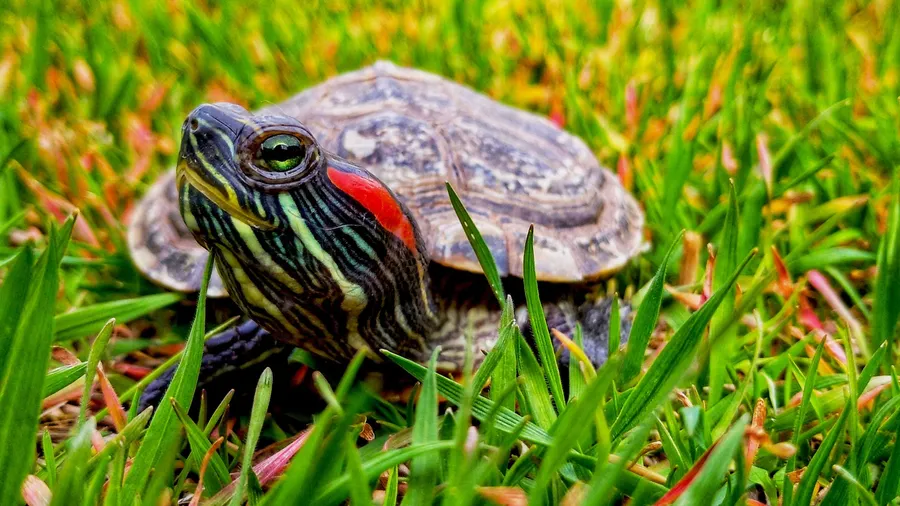 Water Turtle Red-eared Slider Grass Photography -
