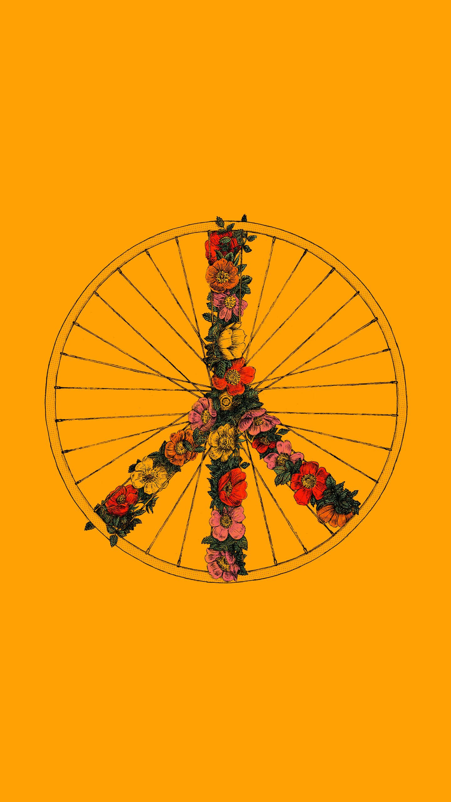 Yellow Floral Peace Wheel Wallpaper
