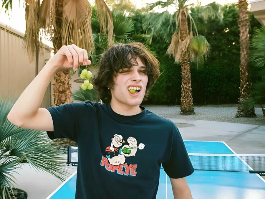 Youth Eating Grapes Outdoors Wallpaper